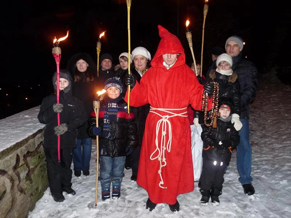 In front of the famous Town Hall you will meet the Red monk and together with him, lighting your way with torches, we will visit mysterious places in the center of Tallinn and learn and hear the lore of famous merchants and landlords.  The Red Monk will tell you about the various ghosts you can meet in the garden of the Danish King, the Virgin’s Tower, and the Short Leg Gate Tower.